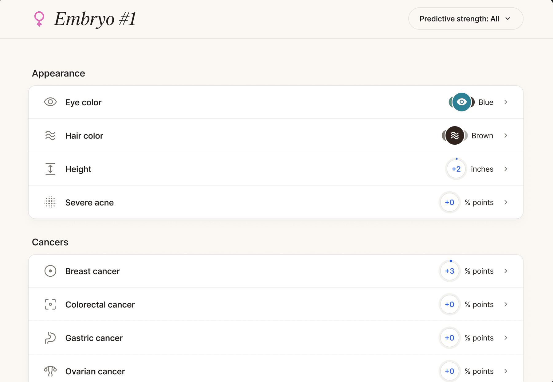 In-depth embryo analysis: Nucleus Embryo AI-powered analysis tool provides comprehensive information about your embryos’ genetic makeup, helping you compare and choose based on long-term health and well-being markers.